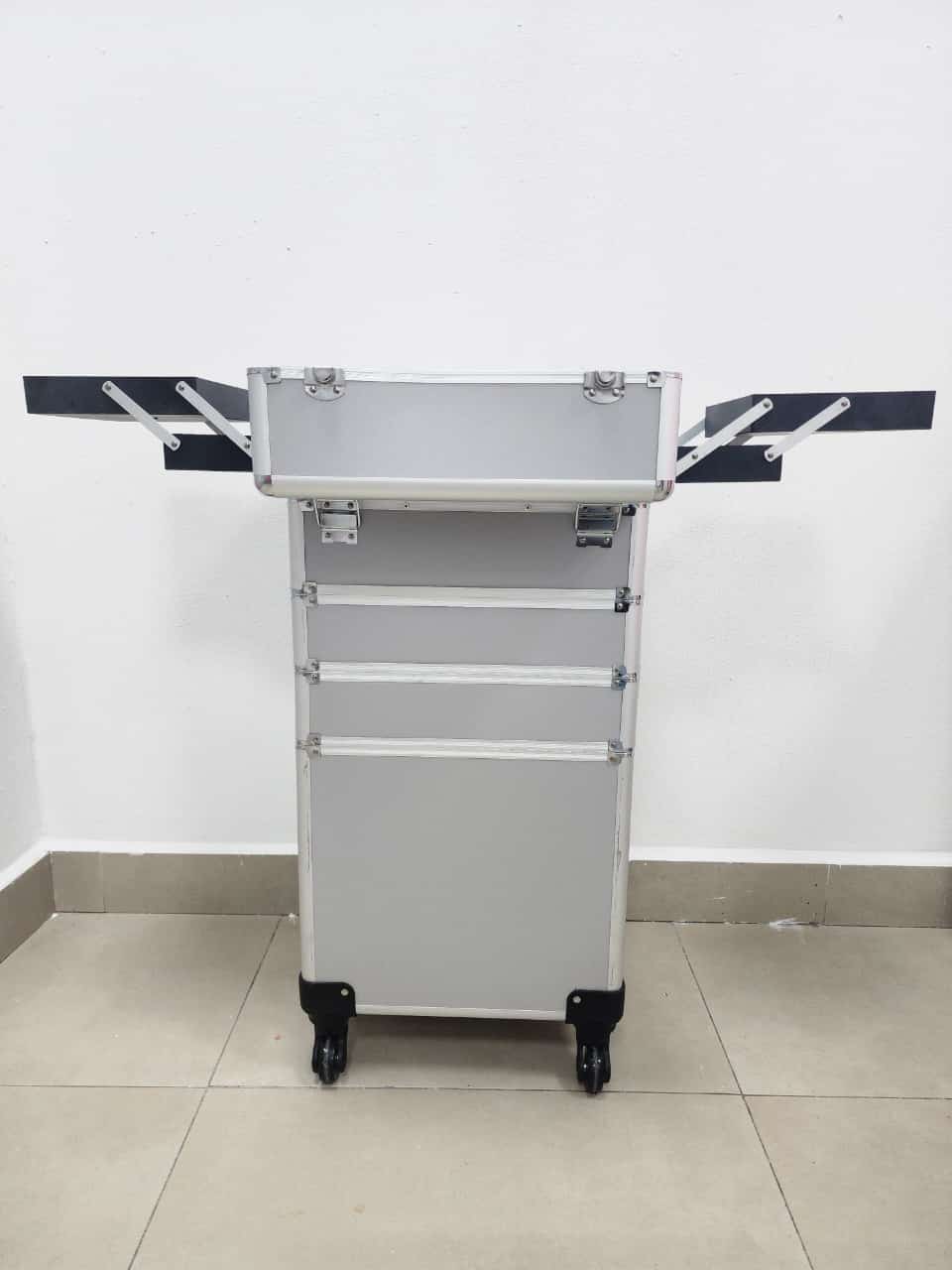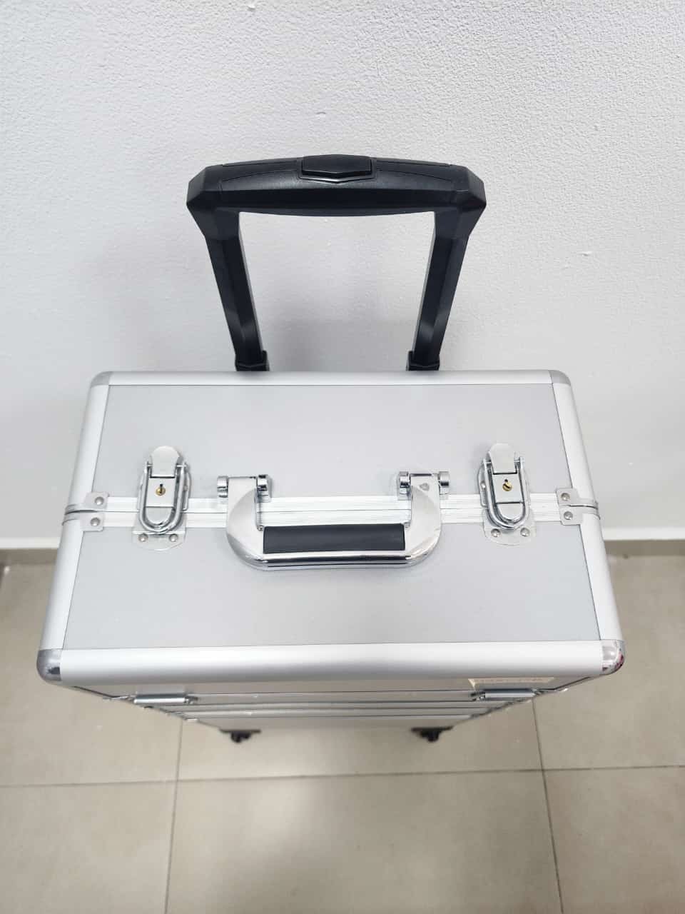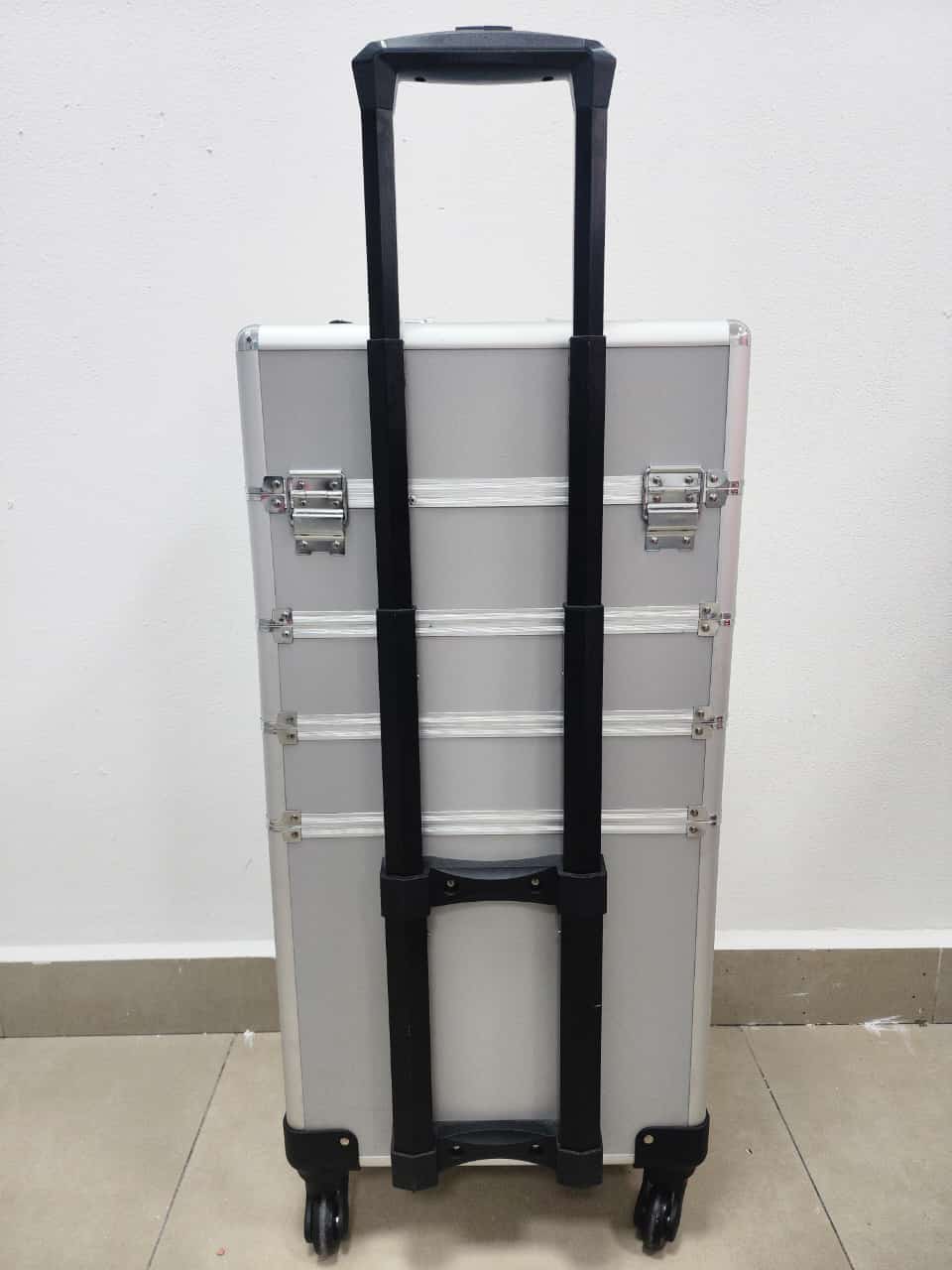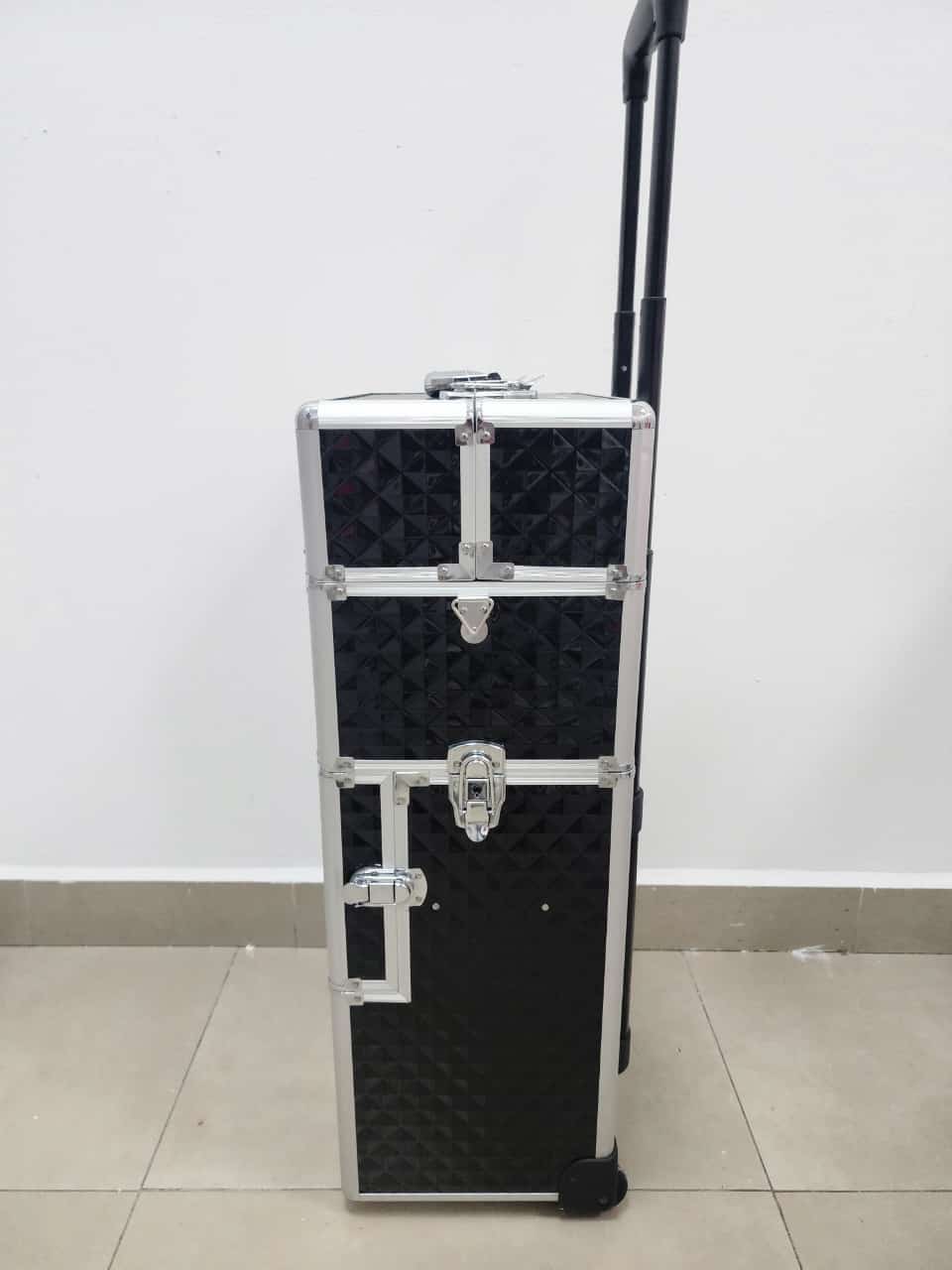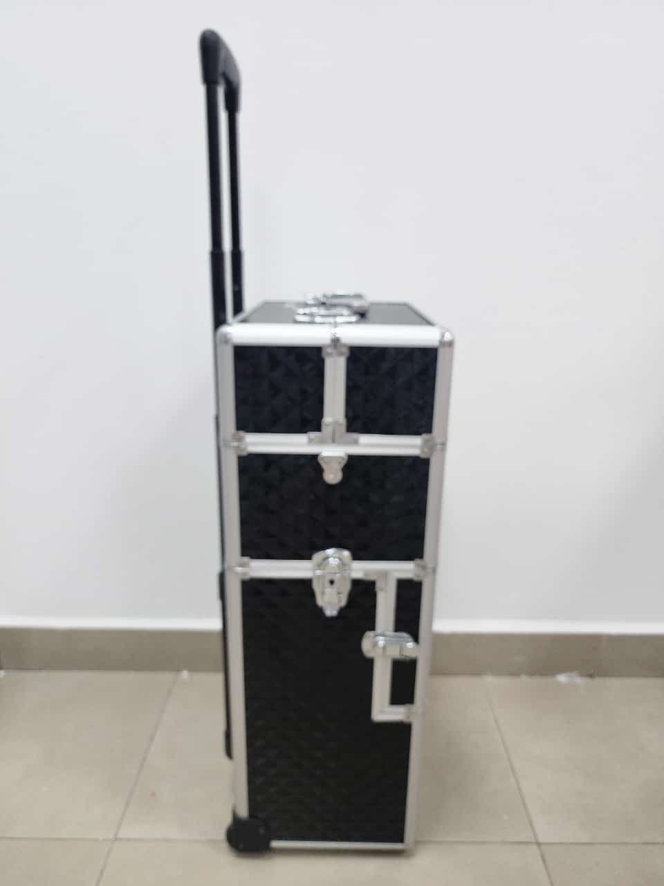 Producto: Maleta grande de 3 compartimentos con ruedas para guardar herramientas de manicure pedicure y maquillaje.