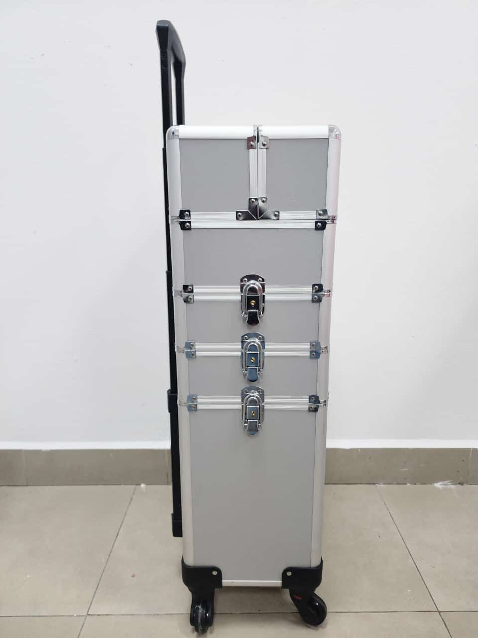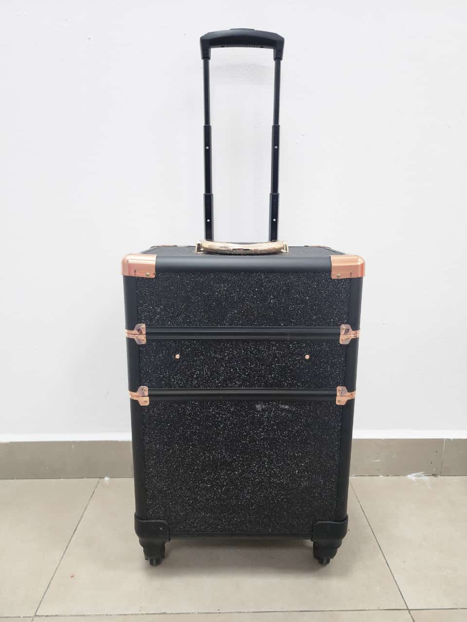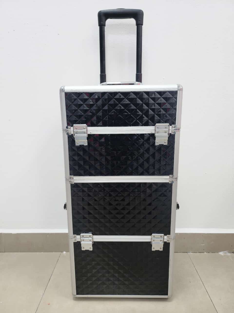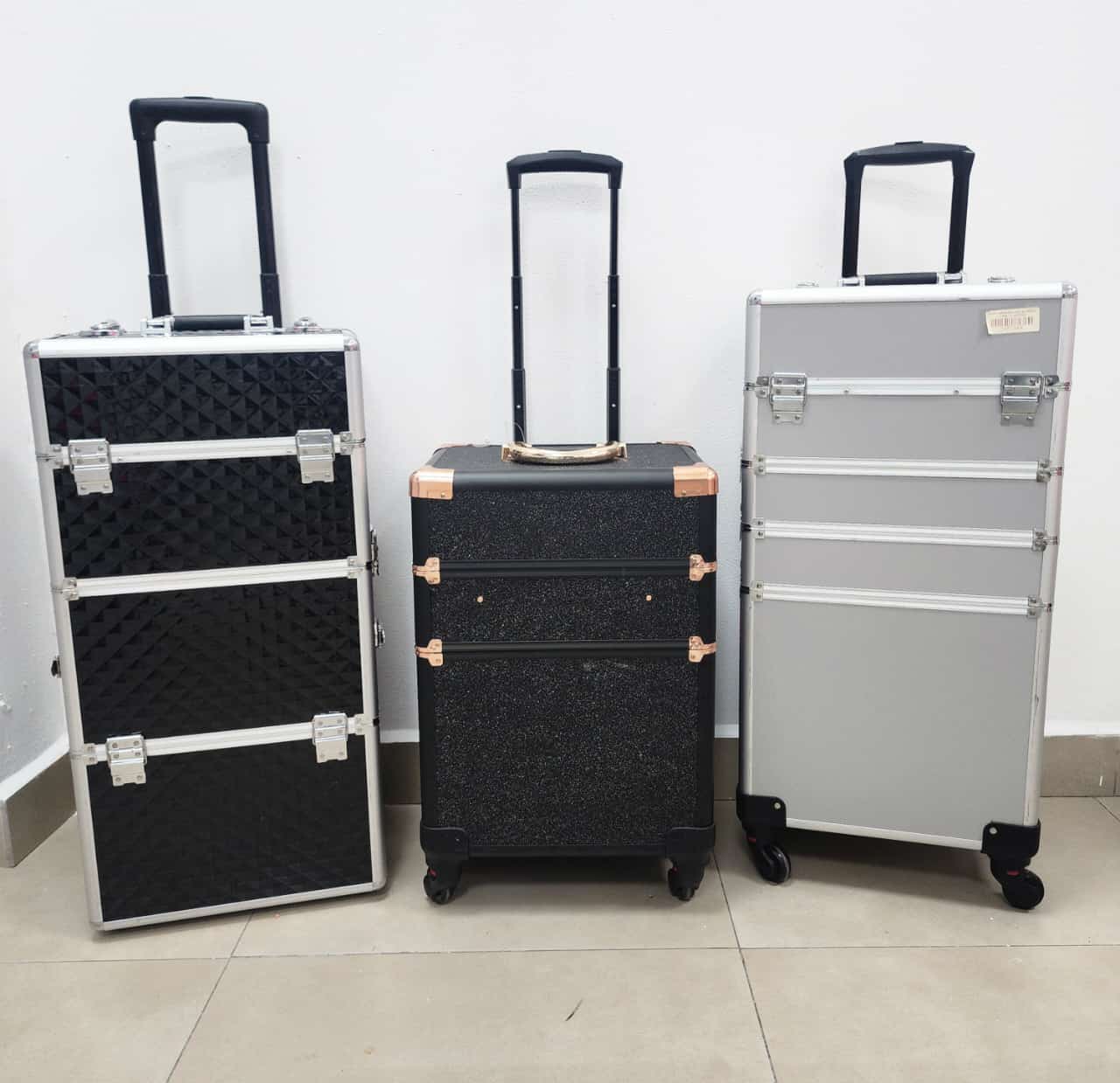 Producto: Maleta grande de 3 compartimentos con ruedas para guardar herramientas de manicure pedicure y maquillaje.