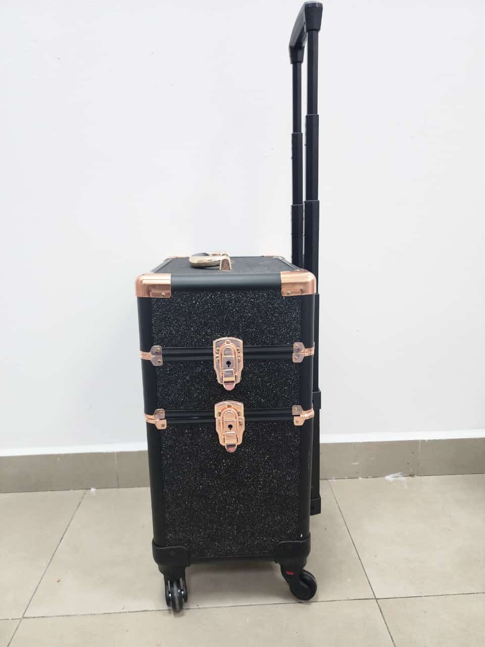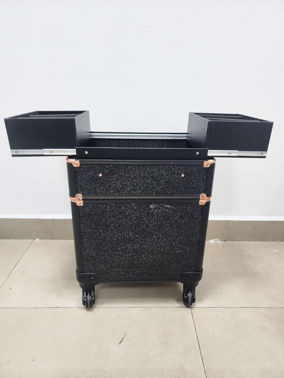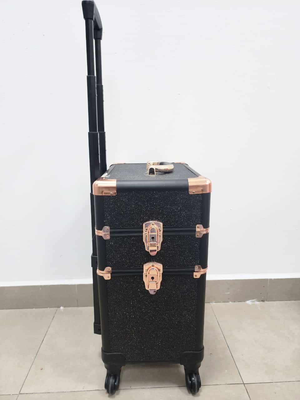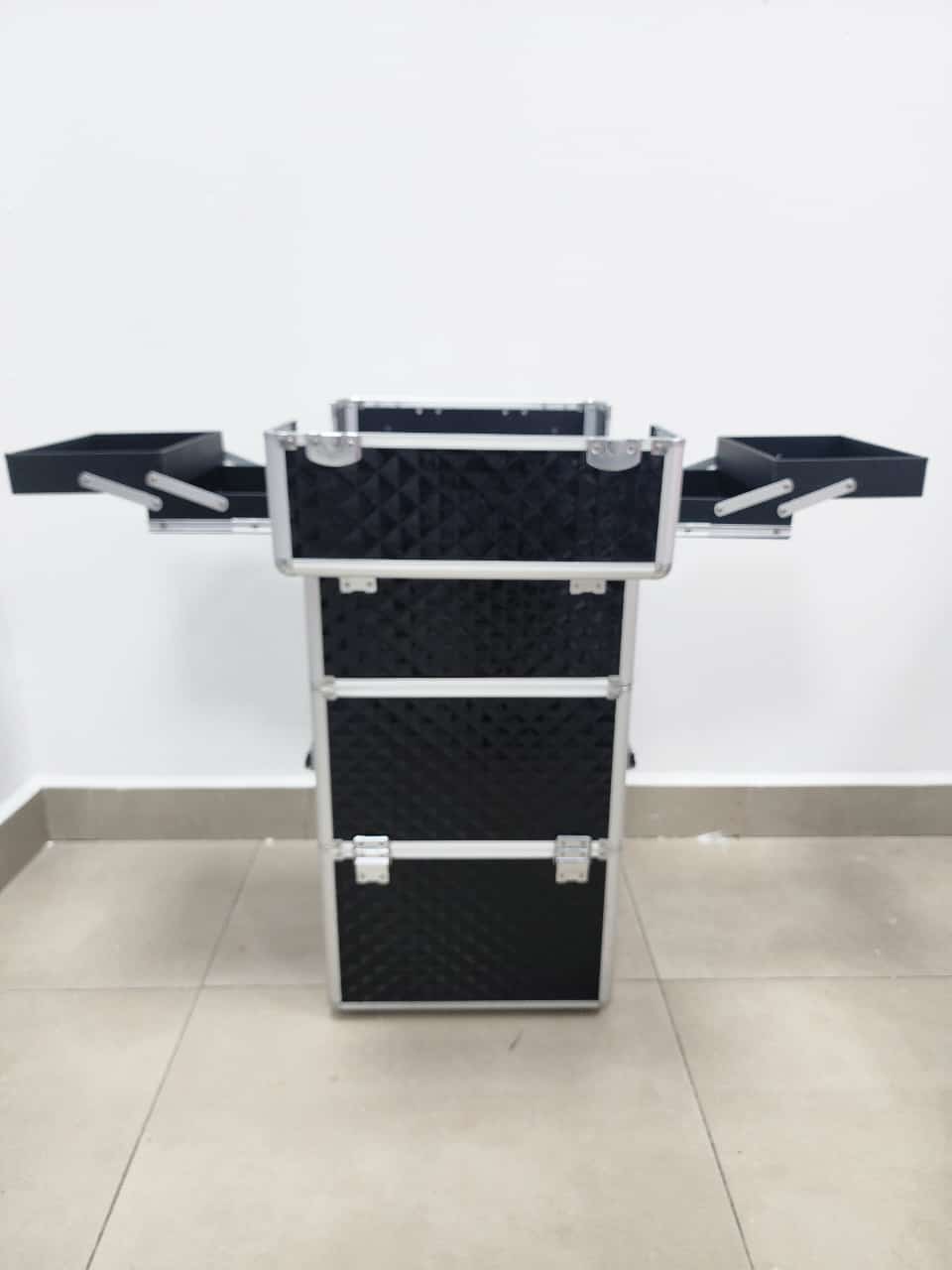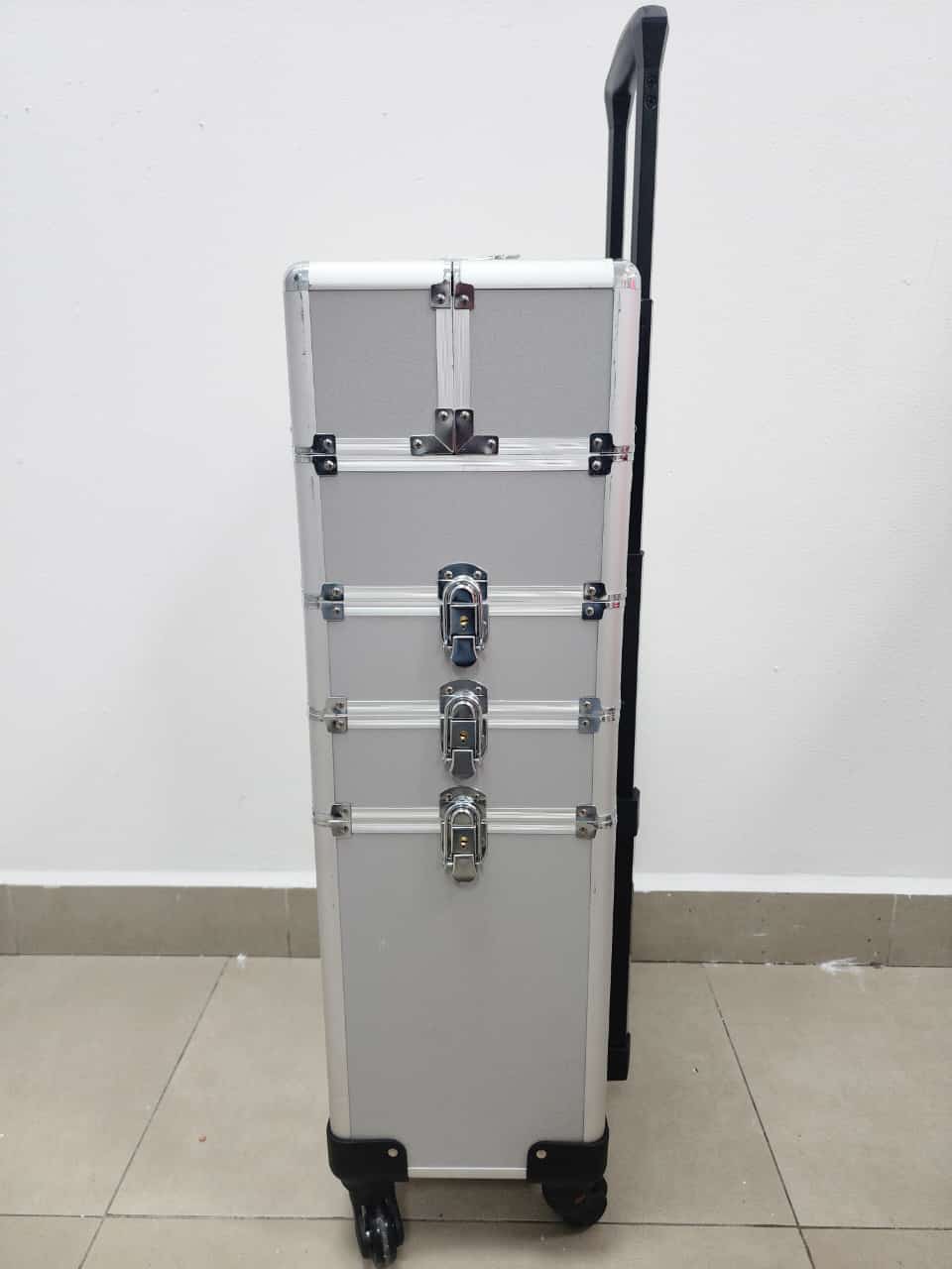 Producto: Maleta grande de 3 compartimentos con ruedas para guardar herramientas de manicure pedicure y maquillaje.