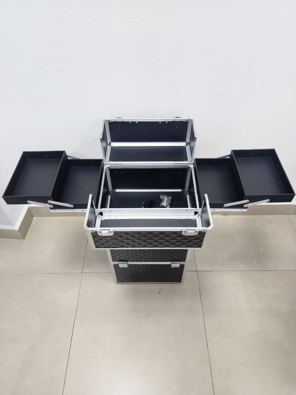 Descripción: Maleta grande de 3 compartimentos compacta y práctica maleta diseñada específicamente para almacenar todo lo necesario para un manicure, pedicure y maquillaje profesional.